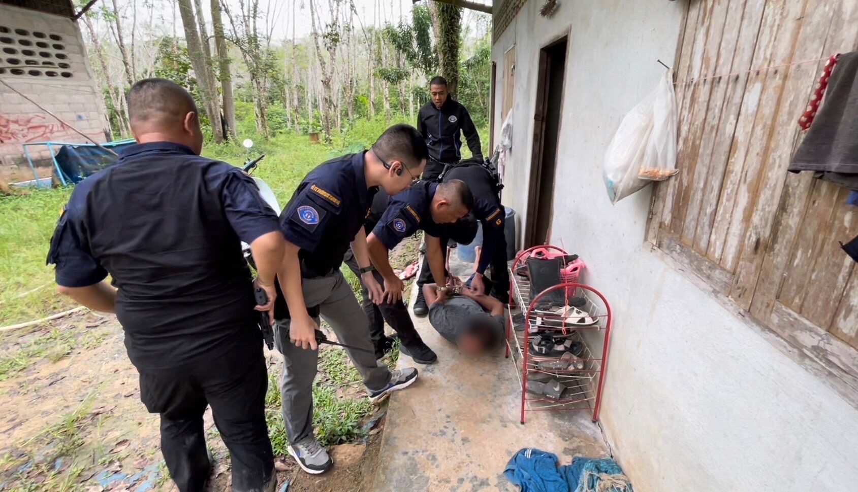 ต่อมา เจ้าหน้าที่ตรวจ กก.6 บก.ป. สืบสวนทราบว่าผู้ต้องหาหลบหนีการจับกุมมาประกอบอาชีพรับจ้างกรีดยาง อยู่ในสวนยางพารา หมู่ 6 ต.ทุ่งหมอ อ.สะเดา จ.สงขลา จึงประกอบกำลัง วางแผนเข้าทำการจับกุม