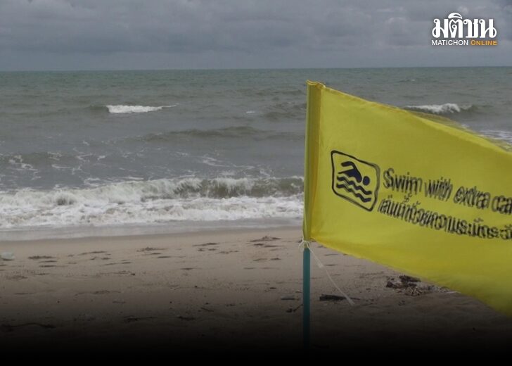 เทศบาลนครสงขลา ยกป้ายสีเหลือง เตือนภัยชายหาด เพิ่มความระมัดระวังในการทำกิจกรรมบริเวณชายหาด หลังคลื่นลมในอ่าวไทยมีกำลังแรงขึ้น ศูนย์อุตุฯใต้ ออกประกาศเตือนฉบับที่ 2