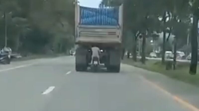 สาวบันทึกคลิป ชายแว้นจยย. ดับเครื่อง เกาะท้ายสิบล้อ สุดอันตราย ไกล 4 กิโลเมตร
