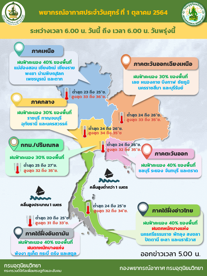 พยากรณ์อากาศประจำวันที่ 1 ตุลาคม 2564