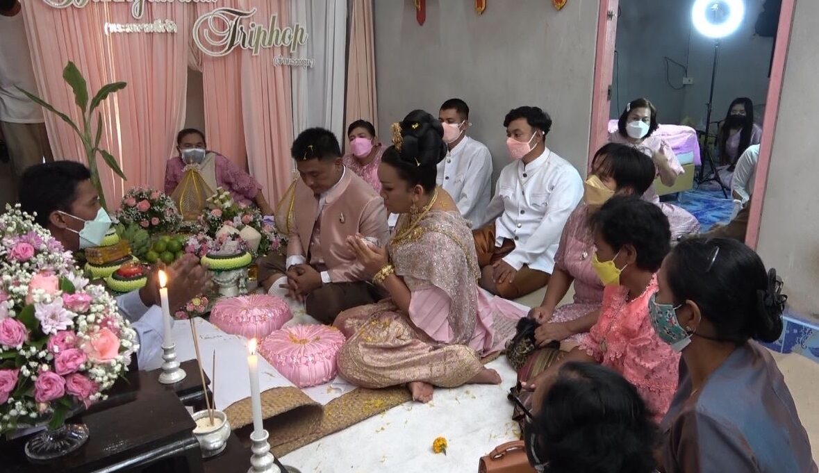 โดยพิธีเริ่มตั้งแต่ช่วงเช้า พิธีฤกษ์ขบวนขันหมาก ซึ่งเจ้าบ่าวเจ้าสาว เปิดตัวมาในชุดไทย อย่างสวยสดงดงาม ต่อด้วยพิธีหลั่งน้ำพระพุทธมนต์ ซึ่งบรรยากาศในงานอบอวลไปด้วยความรัก และสุดโรแมนติก ของทั้งสอง ตอนทำพิธีนั้นหวานสุดๆ แต่มีเพียงเจ้าบ่าวกลั่นน้ำตาไม่หยุด ดีใจกับการแต่งงานครั้งนี้ ขณะที่เพื่อนๆญาติพี่น้อง และครอบครัว ทั้ง2 ฝ่าย ก็ได้เดินทางมา ร่วมเป็นสักขีพยานรักให้กับทั้งคู่ หลังเสร็จพิธีก็มีการร่วมรับประทานอาหาร ภายในงานเลี้ยงอาหารที่เรียบง่าย โดยมีทั้งรับประทานภายในงาน และใส่กล่องรับประทานที่บ้าน