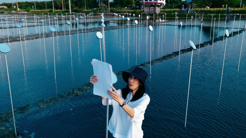 Field Work: โดย thingsmatter ที่จะจําลองความระยิบระยับของชายหาดที่เคยเต็มไปด้วยนาเกลือเมื่อมองมาจากท้องทะเล ผู้ชมจะได้สัมผัสขณะเดินชมชิ้นงานเมื่อแสงอาทิตย์ทอดทํามุมสะท้อนกับกระจกเงาจํานวนหลายร้อยชิ้นที่ติดตั้งในมุมองศาต่างๆ กันในนาเกลือ ของตําบลบานา อําเภอเมือง จังหวัดปัตตานี