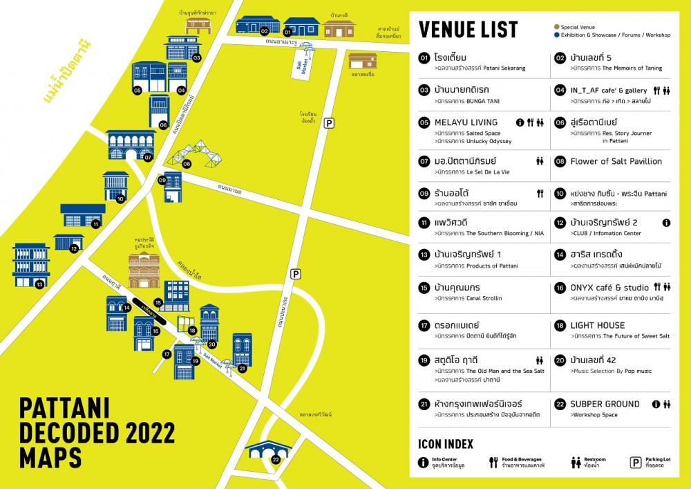 ทีมผู้จัดงานเทศกาล Pattani Decoded 2022 ยืนยันถึงความพร้อมในการจัดงานที่จะมีขึ้นในวันที่ 2-4 กันยายน 2565 บริเวณถนนฤาดี ถนนปัตตานีภิรมย์ และถนนอาเนาะรู ซึ่งธีมของการจัดงานเป็นเรื่องเกลือหวานปัตตานี หรือ Garam manis มาถอดรหัส โดยผ่านมุมมองและแนวคิดของศิลปิน นักออกแบบ ทั้งคนในพื้นที่และนอกพื้นที่ ในมุมมองที่หลากหลาย เพื่อเปิดโอกาสทางเศรษฐกิจและผู้คนในพื้นที่