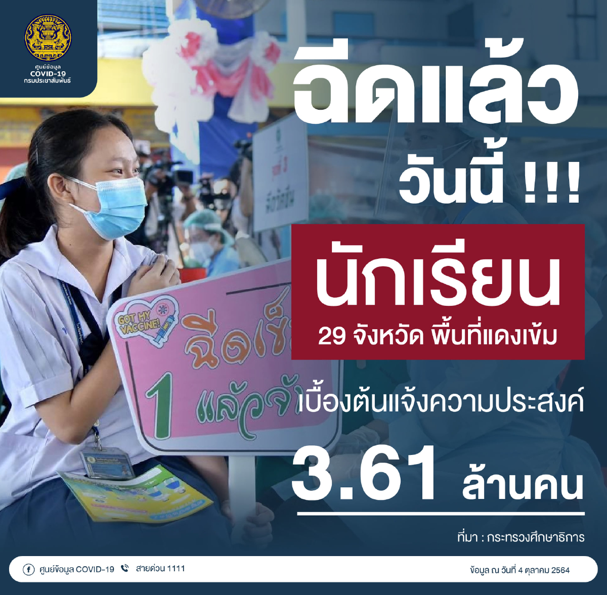 วันที่ 3 ตุลาคม 2564 มีผู้รับการฉีดวัคซีน